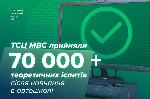 З початку 2026 року кандидати у водії склали понад 70 тисяч теоретичних іспитів після навчання в автошколі. із них 15180 - з успішним результатом із першої спроби, а це 21,5%.