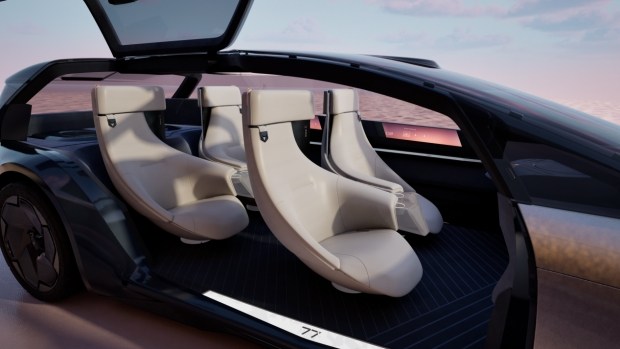 Салон Arcfox 77° вражає не меншою мірою, ніж зовнішність. У ньому встановлені ковшеподібні обертові сидіння, незвичний штурвал замість класичного керма та мультимедійні екрани, інтегровані безпосередньо у двері. Інтер'єр створено з акцентом на інноваційність і комфорт, що відображає прагнення Arcfox підкреслити свій преміальний статус.