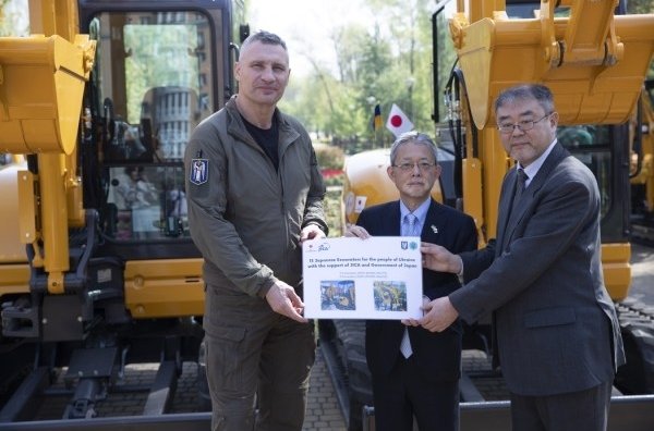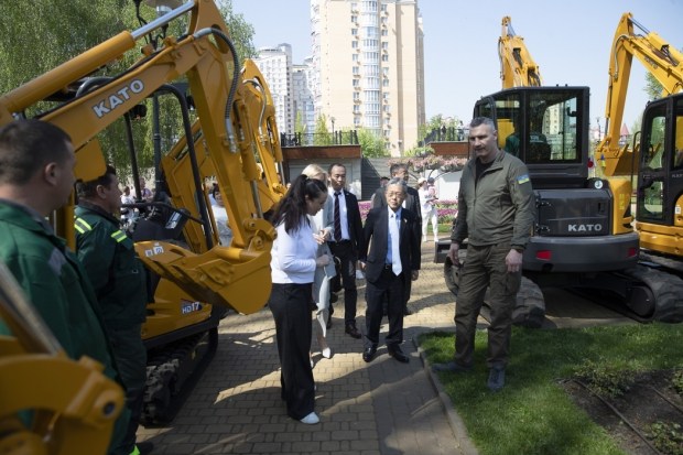 Столиця отримала від японських партнерів 13 сучасних мініекскаваторів KATO. Мер Києва Віталій Кличко разом із Надзвичайним і Повноважним Послом Японії в Україні Масаші Накагоме передали їх КО «Київзеленбуд».