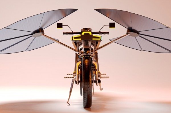 Бюро MASK Architects представило концепт мотоцикла Solaris з сонячними крилам27 листопада 2025Мотоцикл базується на алюмінієво-карбоновій рамі та оснащений інтелектуальною системою керування сонячною енергією, але поки що є лише концептом без планів на серійне виробництво.