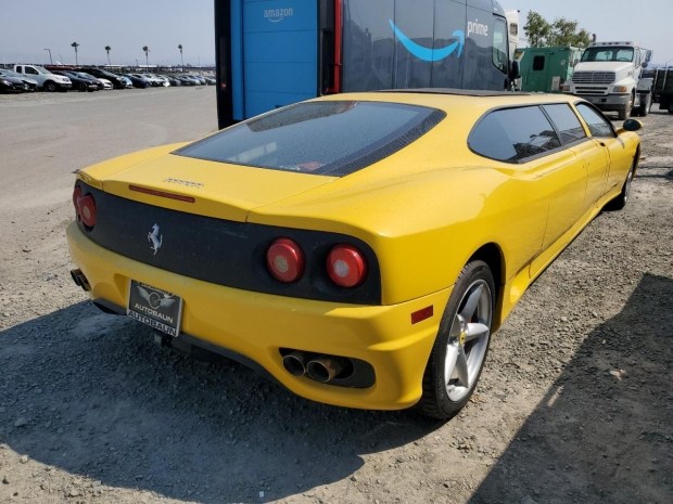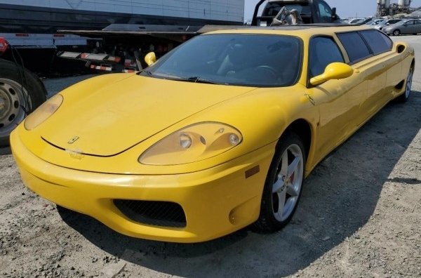 Лімузин на базі Ferrari 360 Modena з пробігом в майже 60 тисяч кілометрів виставили на продаж. Вірогідно, цей автомобіль наразі не на ходу й раніше продавався на eBay за 95 тисяч доларів.