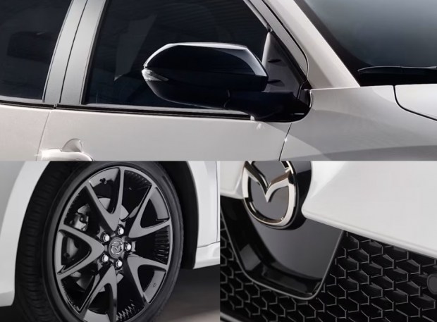 Модернізований хетчбек легко впізнати за новою решіткою радіатора у традиційному стилі Mazda. Крім того, у нього агресивніші бампери та змінена оптика, а з дверей багажника зникла чорна глянцева накладка.