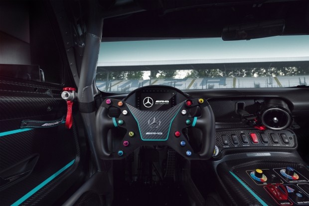 Салон виконаний у трековому стилі з акцентом на безпеку й водночас має особливі дизайнерські штрихи. Рульове колесо нагадує штурвал боліда, оздоблення виконане матовим карбоном, присутні смарагдові акценти, що перегукуються з екстер'єром. На центральній консолі встановлена табличка з написом «1 of 30», а також автографом молодого пілота Mercedes-AMG Кімі Антонеллі, який вважається майбутньою зіркою Формули-1. Додатково є карбоновий каркас безпеки, аварійний люк, система пожежогасіння, захисні сітки та п'ятиточкові ремені безпеки.