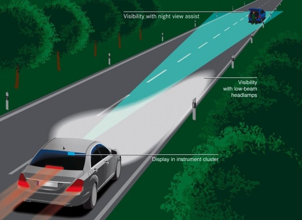 Компанія Mercedes-Benz тихо, без гучних заяв і офіційних повідомлень, відмовилася від однієї з найцікавіших і водночас найатмосферніших своїх технологій безпеки - системи нічного бачення Night View Assist, яка протягом багатьох років була символом інновацій і технічної досконалості бренду. Вперше запроваджена ще у середині 2000-х, вона дозволяла водієві «бачити в темряві», підсвічуючи пішоходів і тварин на дорозі за допомогою інфрачервоних камер і спеціальних прожекторів. З часом з'явилася вдосконалена версія Night View Assist Plus, яка не лише відображала теплове зображення, а й буквально «підсвічувала» пішоходів на шляху автомобіля, створюючи ефект театрального прожектора.
