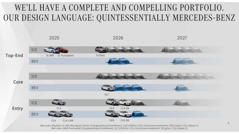 Зокрема, у 2026 році дебютують нові кросовер Mercedes-Benz GLA та мінівен V-Class, а також екстремальний електромобіль Mercedes-AMG GT XX потужністю 1 мегават (1360 к.с.). У лінійку Mercedes-Benz G-Class повернеться кабріолет, а купе Mercedes-Benz CLE отримає заряджену версію із V8.
