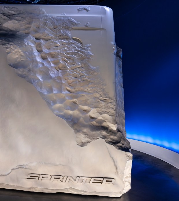 Компанія Mercedes-Benz Vans розкрила перші подробиці про нове покоління культового фургона Sprinter, приурочивши це до наближення визначного ювілею - 130 років із моменту створення першого у світі розвізного автомобіля, який Карл Бенц розробив ще у 1896 році. Презентація майбутньої моделі відбулася у незвичайний спосіб - через масштабну скульптуру під назвою The Boulder («Валун»), створену з цілісного блоку матеріалу. Довжина цієї арт-інсталяції становить 6,5 метра, висота - 2,75 метра, а ширина - 2,5 метра. Вона поєднує елементи мистецтва і технологічної точності, символізуючи перехід від історії бренду до його високотехнологічного майбутнього. У формах цього «валуна» вже можна розгледіти обриси Sprinter наступного покоління - з акцентом на новий дизайн, пропорції та технологічність.