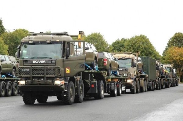 Були передані й ваговози - п'ять автомобілів Scania G500 (8x8) із системою швидкого навантаження-розвантаження DROPS (Demountable Rack and Pickup System) у складі двовісних причепів.