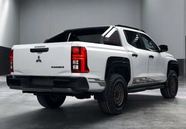 Пікап Mitsubishi Triton Raider можна пізнати за чорною решіткою радіатора, дугами та підніжками. Крім того, встановили додатковий захист днища та особливі 18-дюймові диски із позашляховими шинами Bridgestone Dueler A/T 002 розміром 285/60 R18, для яких знадобилися розширювачі арок.