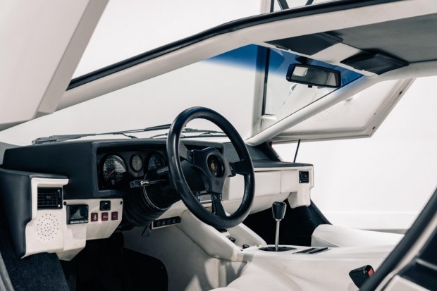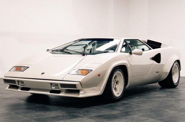Конкретно цей Lamborghini Countach 1987 року вирізняється особливим перламутровим білим кольором кузова. Його комплектація включає аудіосистему Alpine.