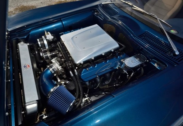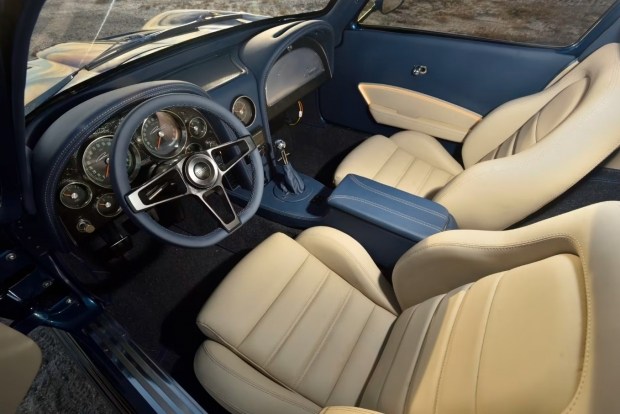 Зовні автомобіль безпомилково впізнається як Corvette Sting Ray із розділеним заднім склом, але майже кожен елемент кузова був переосмислений. Фірмове split window не просто збережене, а збільшене та «втоплене» в кузов, що суттєво покращило огляд назад. Хромоване оздоблення навколо скла прибрали, щоб не порушувати чистоту ліній. Задню частину кузова, унікальну саме для моделі 1963 року, зробили масивнішою, а декоративні елементи замінили функціональними рішеннями. Більшість блискучих деталей або зникли зовсім, або були виконані з чорного хрому, виготовленого майстрами 5150 Customs. Кузов пофарбували у відтінок Ferrari Azzurro California Blue - колір, який підкреслює скульптурність форм і водночас ненав'язливо відсилає до європейської дизайнерської школи.