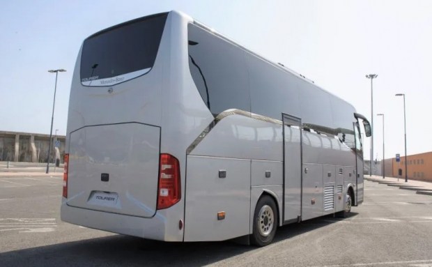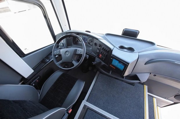 Звідти ж перейшло й оформлення задньої маски кузова - із проштампуванням та світлоблоками. На відміну від Travego, силовий агрегат у новинки з Греції розташовано спереду, адже автобус побудований на модернізованому шасі вантажівки Mercedes-Benz Atego.
