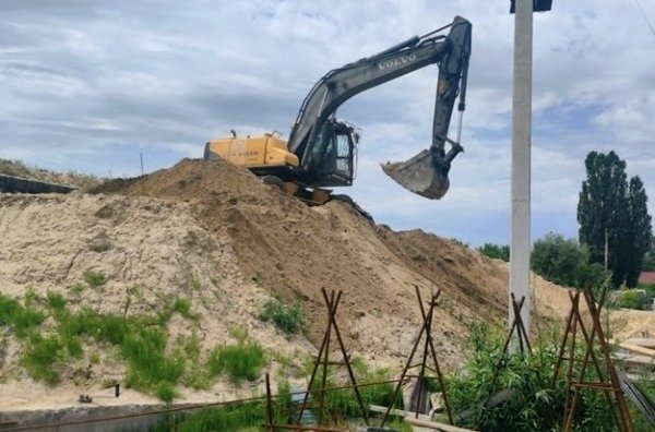 Також тривають роботи з розчищення та підготовки майданчика, насипання ґрунту та ущільнення кожного шару для недопущення осідання. Проводиться формування конуса та його укріплення.