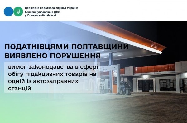 Податківці Полтавської області виявили порушення у сфері обігу підакцизних товарів на одній з автозаправних станцій Полтавського району. Про це повідомило Головне управління ДПС у Полтавській області на своєму сайті.