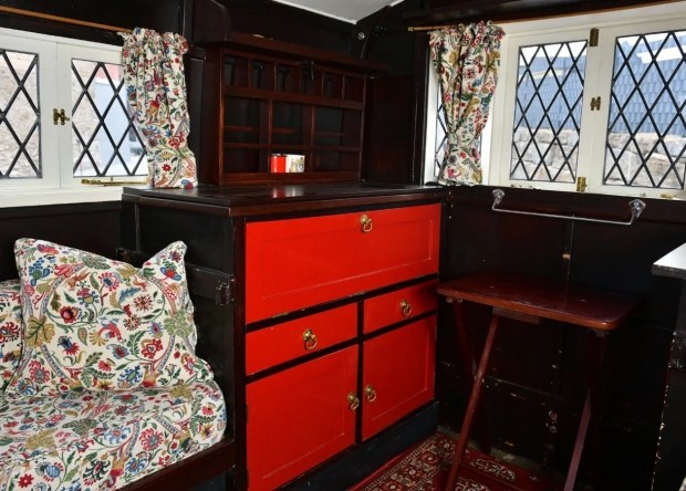 Дім на колесах розрахований на двох осіб. Усередині встановили шафи та невелику кухню, яку в наш час доповнили новою газовою плитою.