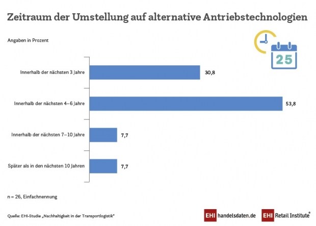 Понад 70 відсотків опитаних компаній у секторі роздрібної логістики перебувають у процесі переходу або готуються до нього. Близько 85 відсотків компаній планують перейти на альтернативні технології приводів упродовж наступних шести років, 30 відсотків з яких планують зробити це у найближчі три роки трьох років.