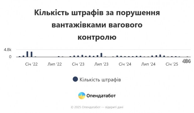 Загалом з жовтня 2021 року, коли WIM-комплекси почали роботу в Україні, було виписано 38 710 постанов на 629,64 млн грн. Найбільше - у грудні 2021 (3 932 постанови) та січні 2022 (3 728). Зараз темпи знизилися: у 2025 році в середньому, виписується 500 постанов щомісяця. Для порівняння, торік їх було 750, а у 2023 - 1 130.