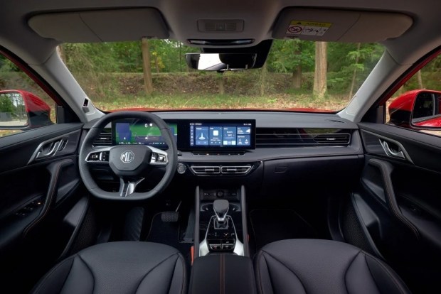 У салоні на передній панелі встановлено два 12,3-дюймових дисплеї. Новий MG HS 2025 став просторішим усередині, а об'єм багажника зріс до 507-1484 л у бензинових версіях і 441-1291 л - в гібридах.