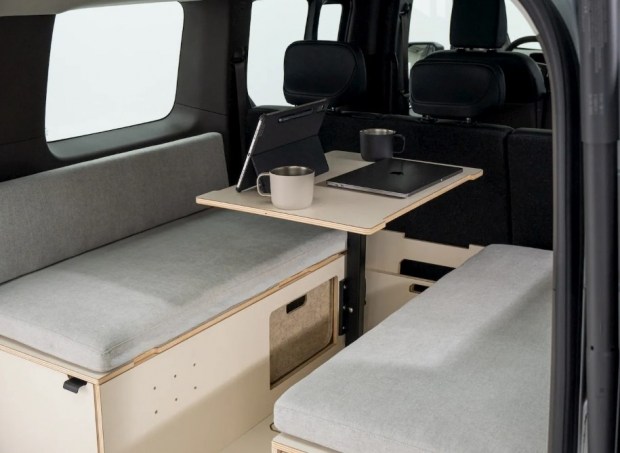 Передбачено поворотний стіл із регулюванням висоти, що дозволяє використовувати салон як мобільний офіс або обідню зону. На задніх дверях можуть встановлюватися висувні сидіння для відпочинку просто неба.