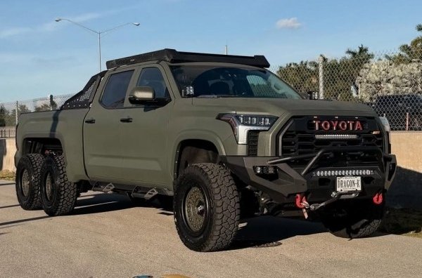 Пікап Toyota Tundra подовжили до приблизно 7 метрів та додали третю вісь. Крім того, суттєво збільшили кліренс і встановили позашляхову гуму, а днище отримало додатковий захист.