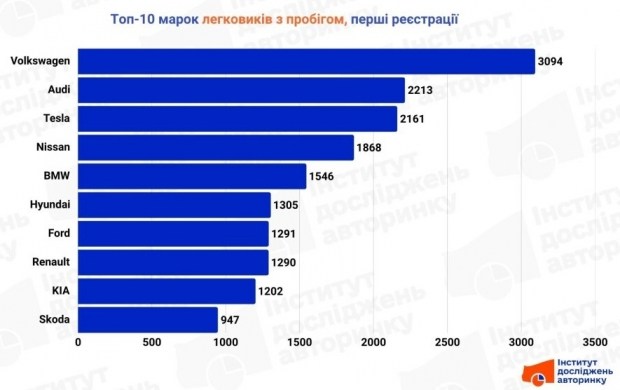 У рейтингу марок перше місце традиційно утримує народний улюбленець Volkswagen. Тут без змін - «Гольфи» та «Пасати» везуть стабільно. На другій сходинці - преміальна Audi, що свідчить про бажання українців їздити на якісних німецьких авто.
