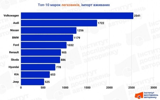 Nissan та Ford міцно тримаються в першій п'ятірці завдяки стабільному потоку кросоверів зі страхових аукціонів США. Також у Топ-10 бачимо стабільні результати від Renault, Skoda, Hyundai та KIA, які традиційно закривають потреби прагматичного мас-маркету. Замикає десятку Jeep, що ще раз підкреслює любов українців до формату SUV.