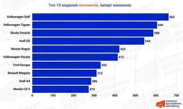 Цікаво спостерігати за успіхом Audi Q5 - четверта позиція в загальному заліку свідчить про високу популярність цієї моделі, яку активно везуть як з Європи, так і зі Штатів. Також у верхній частині списку тримаються «американці» Nissan Rogue та Ford Escape, а також перевірені часом Volkswagen Passat та Renault Megane. Замикають десятку Audi A4 та Mazda CX-5, демонструючи прихильність українців до зрозумілої європейської класики та надійних японських кросоверів.