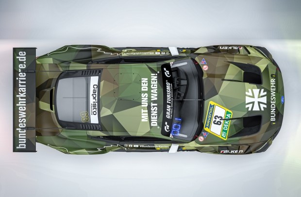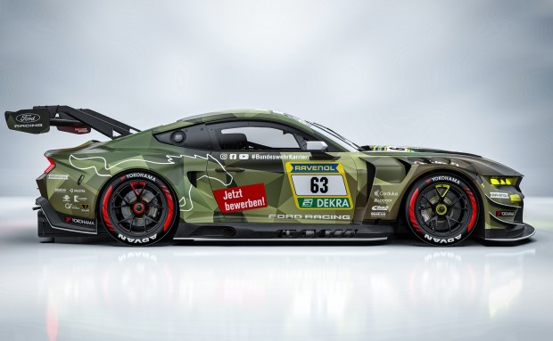Ford Mustang GT3 Evo2 з його хрипким звуком V8 вийде на трасу Нюрбургринга у камуфляжі німецьких Збройних сил. Це перший випадок, коли уряд Німеччини спонсорує автомобіль у чемпіонаті на витривалість.