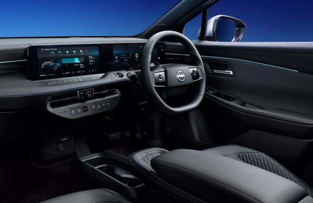 Салон Nissan Leaf 2026 отримав дорожче шкіряне оздоблення з синіми вставками та швами. Також дещо змінили кермо електрокара.