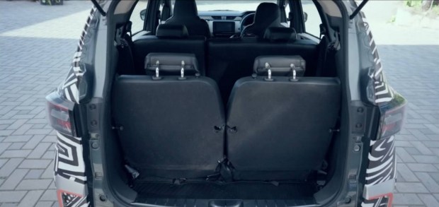 Опубліковані зображення інтер'єру демонструють стримане, функціональне оформлення без надмірної декоративності. У салоні домінує темна гама з контрастними світлішими вставками на дверях. Видно цифрову панель приладів, багатофункціональне кермо та акуратні хромовані акценти. За аналогією з Triber очікується, що третій ряд сидінь можна буде складати або знімати, що суттєво розширює можливості перевезення багажу.