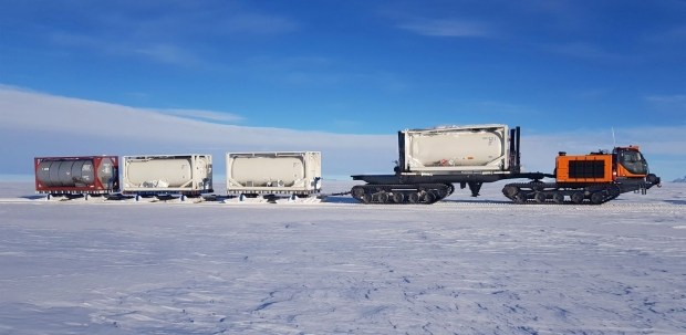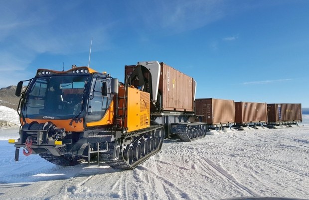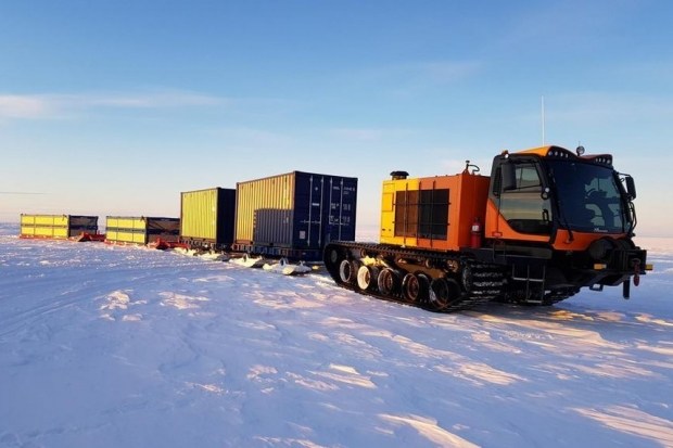 Відстань від місця розвантаження судна на краю льоду до дослідницької станції займає два-три дні. Машини робитимуть по кілька ходок, тягаючи за собою причепи загальною вагою під 150 тонн.