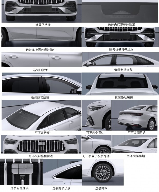 Седан D-класу зовні нагадує новий Geely Emgrand. У нього схожий стрімкий силует, широка «паща» решітки радіатора та розкосі фари. Ліхтарі з'єднані тоненькою діодною смугою. Утім, авто більше за Emgrand і має розміри, подібні до Toyota Camry.