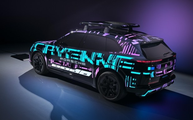 Для демонстрації технології на виставці Porsche підготувала спеціальний закамуфльований прототип електричного Cayenne, який вирізняється унікальним флуоресцентним забарвленням. Воно складається з п'яти відтінків і завдяки впливу змінної напруги створює ефект сяйва, що підкреслює інноваційність моделі та самої технології.