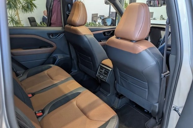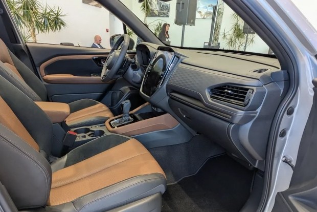 Новий Forester отримав стильний інтер'єр з вертикально орієнтованим сенсорним дисплеєм діагоналлю 11,6 дюйма, вбудований в панель приладів між парою вентиляційних отворів. Любителі аналогових приладів будуть раді парі класичних круглих циферблатів та звичним фізичним елементам керування температурою та звуком. Залежно від комплектації для оздоблення салону використовується тканина, екошкіра або натуральна перфорована шкіра із замшевими вставками.