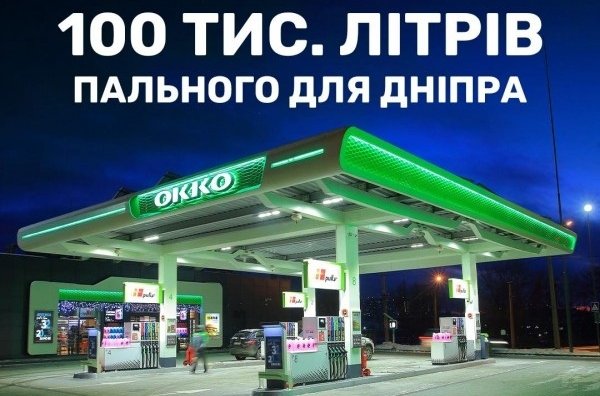 Мережа ОККО не залишилася осторонь під час повного блекауту Дніпра і виділила 100 тис. л пального для комунальних служб міста, повідомила пресслужба мережі в одній зі своїх соцмереж.