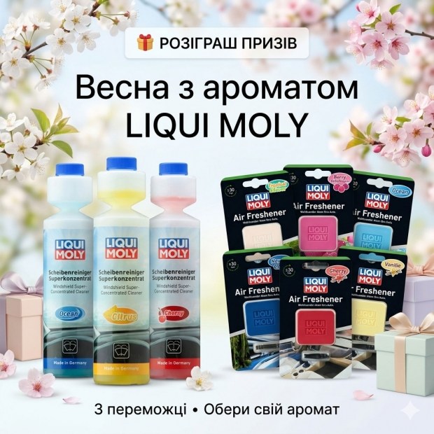 Кожен переможець отримає концентрат омивача LIQUI MOLY Scheibenreiniger-Superkonzentrat з ароматом на вибір, а також фірмовий ароматизатор.