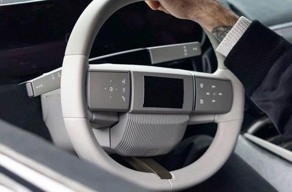 Окремої уваги заслуговує кермо - воно має класичну круглу форму, але водночас виглядає доволі незвично. Два масивні горизонтальні спиці об'єднані в єдину конструкцію, а керування функціями здійснюється через сенсорні панелі та трекпади. Центральна частина прихована, проте вже зараз помітно нетипове розташування модуля подушки безпеки. Загалом таке рішення виглядає радше футуристично, ніж преміально в класичному розумінні, що й викликає неоднозначну реакцію.