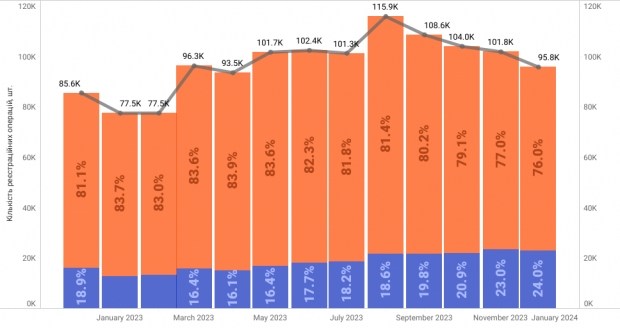 У грудні сумарно українці придбали 95,8 тис. вживаних автомобілів. Це на 12% більше, ніж за аналогічний період минулого 2022 року, але на 5,9% менше, ніж у листопаді-2023.
