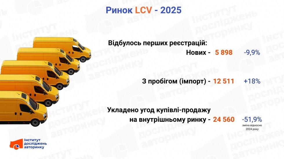 У сегменті фургонів та бусів (LCV) маємо помітне зменшення інтересу до нових машин, на 10%, зростання імпорту вживаних на 18%, та істотне зниження обсягів на внутрішньому ринку - аж на 52%. Тобто, транспорт що вже використовувався як комерційний в Україні, не сильно поспішають продавати, і не надто охоче купують. А ще це ознака того, що від перевізників та малого бізнесу зменшився загальний попит на авто групи LCV.
