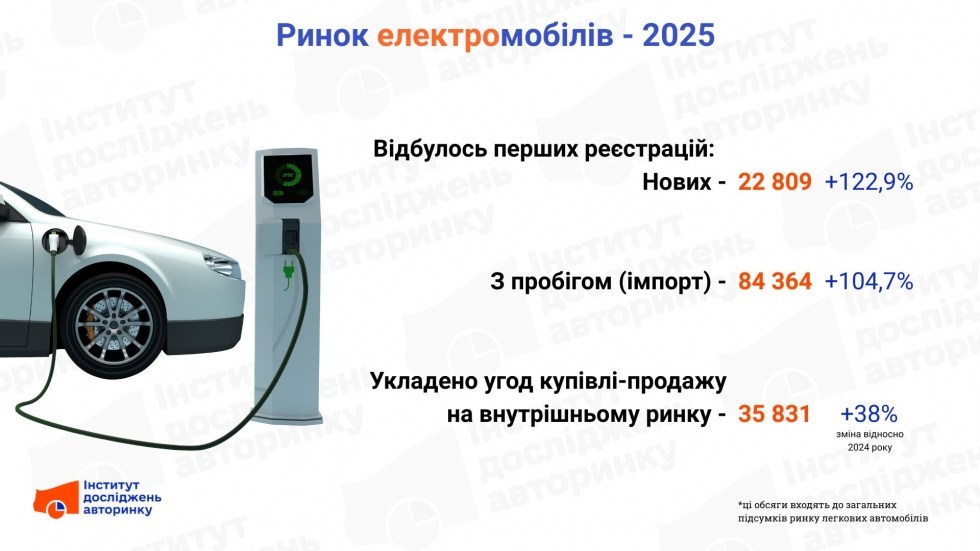 Щодо самих електромобілів, про які було стільки сказано торік, і обсяги яких включені на слайд, що вище, то тут є кілька рекордів. Сумарне поповнення парку у 2025 році більше, ніж у будь-який з попередніх років, вперше перетнуло позначку у 100 тис. ТЗ в рік, і ще чимало можна сказати про ці обсяги, наприклад що лише у грудні прибуло 31 тис. електромобілів, що більше ніж з 2012 по 2022 роки сумарно.