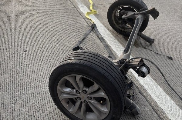 Правоохоронці використали блокувач коліс, щоб знерухомити викрадений Chevrolet Cruze, проте, підозрюваний продовжив рух, через що задня вісь повністю відірвалась від автомобіля.
