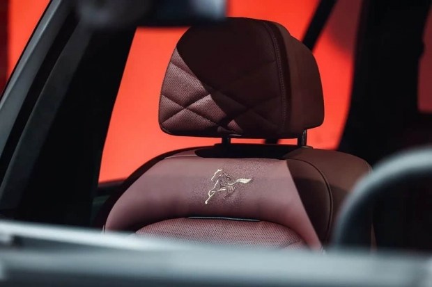 Інтер'єр виконаний як окрема дизайнерська композиція з чітким культурним відсиланням. Салон оздобили синтетичною шкірою Sensafin у насиченому червоному кольорі Volcanic Red, який створює яскравий контраст із зовнішнім кольором кузова. На порогах встановлено золотисті декоративні накладки, а на сидіннях з'явилася ексклюзивна тематична вишивка. Дизайнери надихалися образами «небесних коней» із фресок Дуньхуана - одного з найвідоміших культурних символів Китаю. У вишитій емблемі зі скачучим конем відтворено пластику руху та фактуру, що мають передавати ідеї сили, швидкості та поступу. Таким чином BMW намагається поєднати традиційну символіку з преміальною автомобільною естетикою та підкреслити «щасливе» значення року для локальної аудиторії.