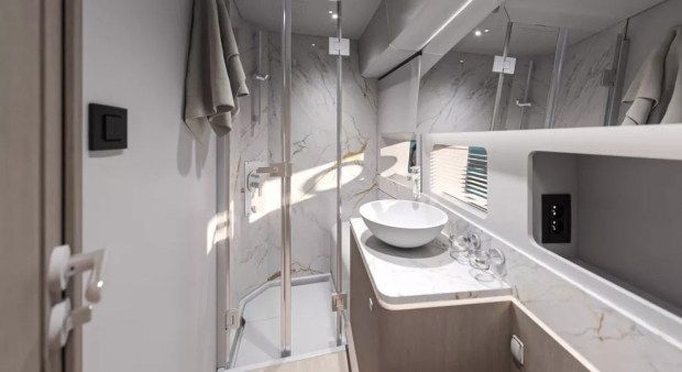 BENETEAU Gran Turismo 50 Alpine оснащений двома двигунами Volvo загальною потужністю 960 сил і здатен розвинути 41 км/год. 650 л пального у двох баках вистачить, аби подолати 400 км.