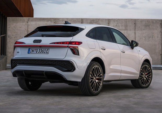 Водночас лінія даху, що спускається від передньої стійки, на 29 міліметрів нижча, ніж у позашляховика й надає Audi Q3 Sportback ще спортивнішого вигляду та стрімкого силуету. Позаду модель має такі ж розділені OLED-ліхтарі, що поєднуються світловою смугою. Логотип також має підсвітку й створює унікальний впізнаваний стиль Audi.