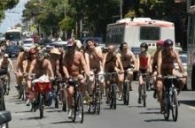 03 липня 20071Голые велосипедисты протестуют против автотранспортаНеобычная акция прошла в прошлые выходные в Брюсселе. Около 200 бельгийцев, раздевшись догола, уселись на велосипеды и проехали по центру города. Эта акция, получившая название World Naked Bike Ride, была направлена против чрезмерной автомобилизации мегап