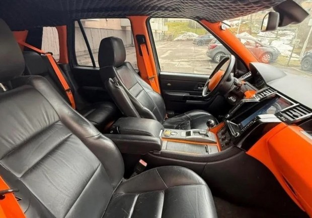 Салон Range Rover Sport обшили чорною і помаранчевою шкірою, а також замінили кермо. Комплектація позашляховика включає клімат-контроль, круїз-контроль, камеру, електропривод сидінь, підігрів крісел та керма, люк, пневмопідвіску.
