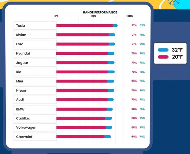 Результати виявилися доволі несподіваними. Найкраще себе проявили електромобілі Tesla і Rivian, а найгірше - продукція концернів General Motors та Volkswagen. Експерти також відзначають, що на запас ходу електрокара взимку впливає наявніть теплового насоса та ефективність його роботи.