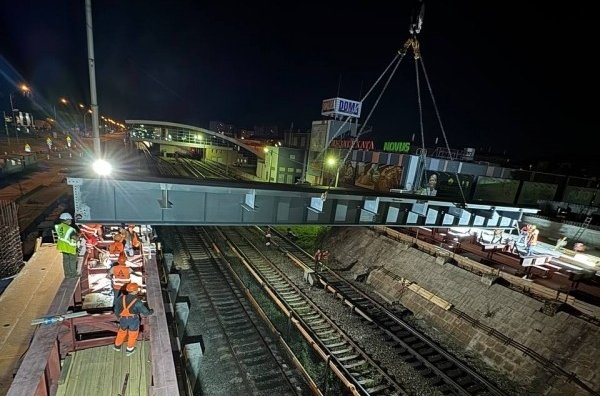 Наразі влаштовують балки між опорами 1 та 2 над лінією метрополітену.