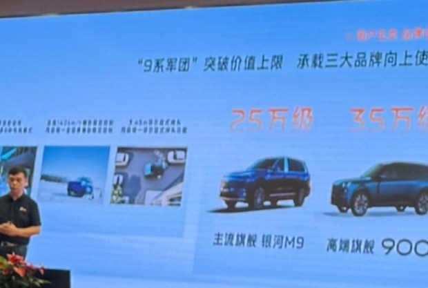 У Мережі з'явилося відео, на якому вперше продемонстровано презентацію флагманського кросовера Geely Galaxy M9. На зображенні чітко видно орієнтовну ціну новинки - 250 тисяч юанів, що приблизно відповідає 35 тисячам доларів США. З огляду на те, що йдеться про великий сімейний кросовер, який за розмірами не поступається моделі Li Auto L9 і навіть перевершує Toyota Grand Highlander, така ціна є напрочуд вигідною та конкурентною на ринку.