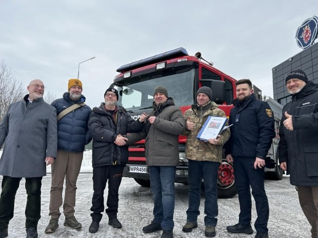 До Києва прибув пожежний автомобіль Scania 114G-340 з подвійною кабіною Crew Cab, який було передано в межах гуманітарної підтримки від шведської організації Sam-Hjalp.