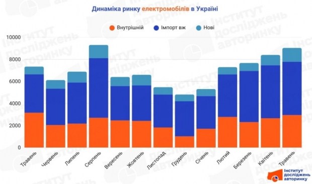 Структура сегмента за підсумками травня-2025 наступна: основу складають імпортовані електромобілі з пробігом, частка таких 53,5%, або 4836 шт.